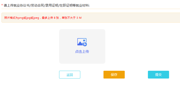 第三步:填写就业信息,并根据提示上传相应的就业材料。